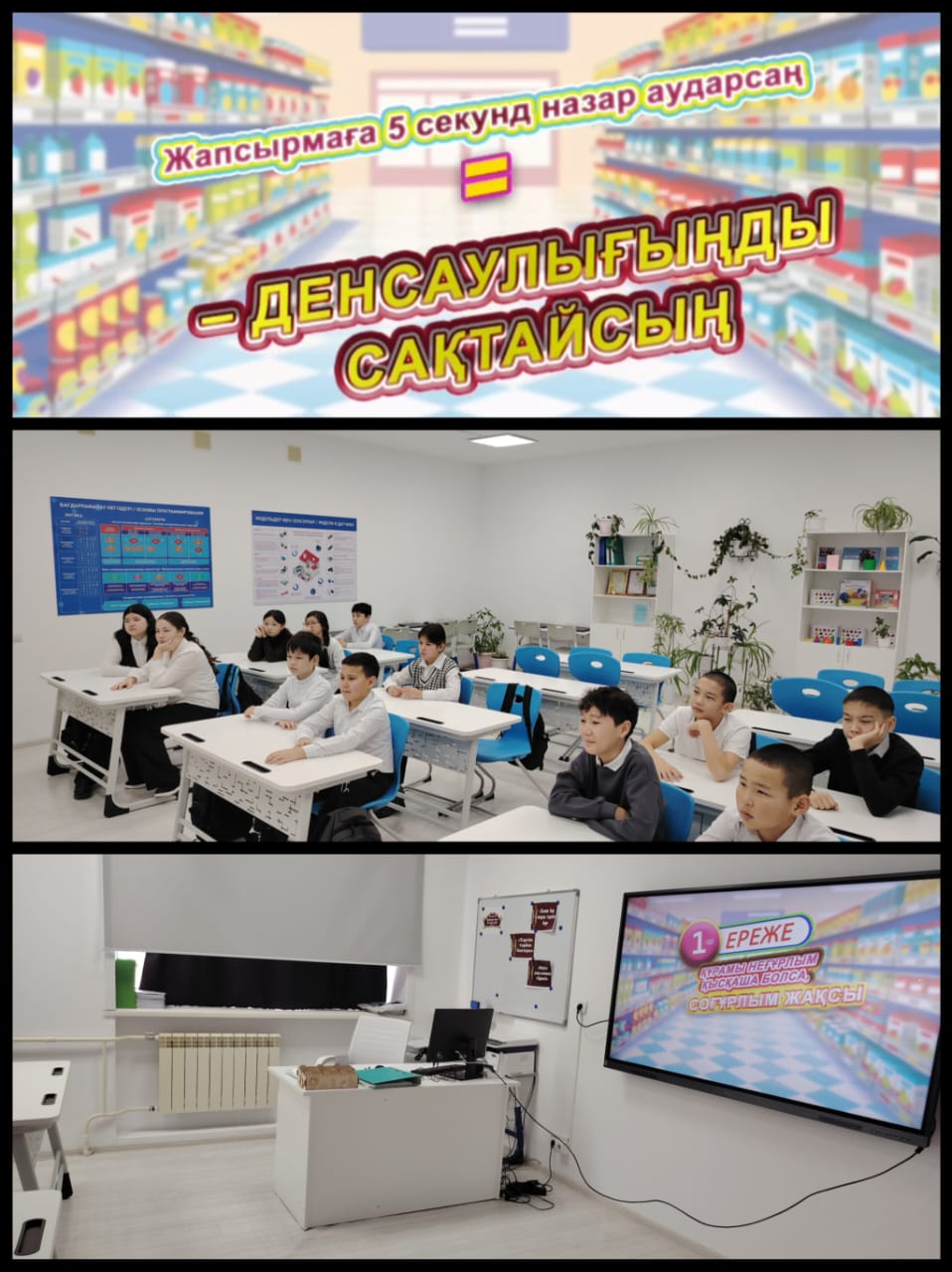 Мұнда дұрыс тамақтанудың негізгі қағидалары жинақталған. 11-сынып білім алушыларына дұрыс тамақтану туралы бейнеролик көрсетілді.