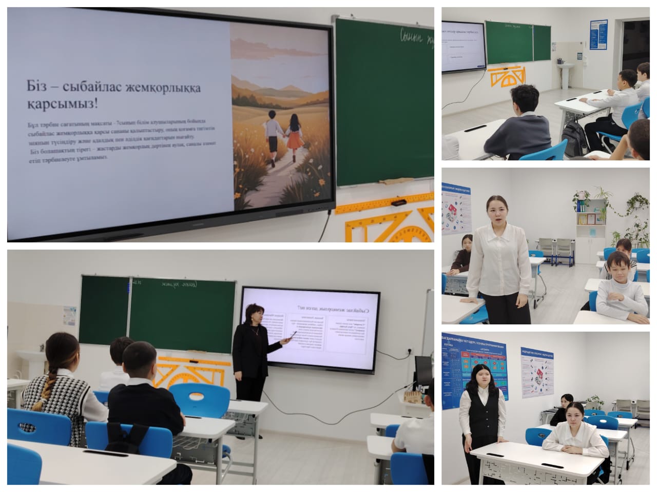«Адал азамат: Біртұтас тәрбие» бағдарламасын іске асыру мақсатында 7-сыныпта «Біз - сыбайлас жемқорлыққа қарсымыз!» тақырыбында сынып сағаты және «Көшедегі қауіпті заттардан қалай аулақ болуға болады?» тақырыбында қауіпсіздік сабағы өткізілді.