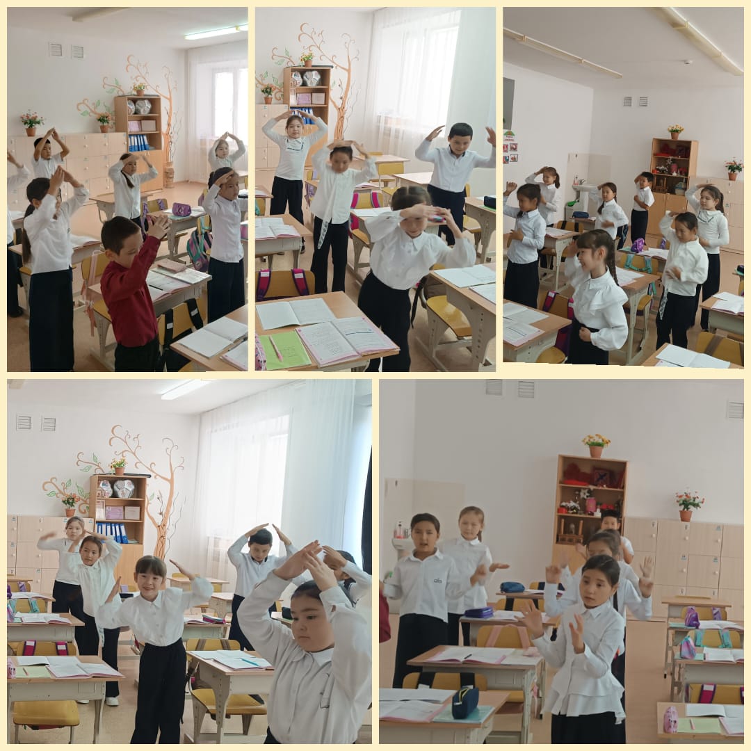 «Адал азамат: «Біртұтас тәрбие» бағдарламасын іске асыру мақсатында 3-сынып білім алушылары арасында сергіту сәті ұйымдастырылды. Мақсаты: Қазақстан Республикасының білім беру ұйымдарында дене жаттығуын жүргізу арқылы білім алушылардың денсаулығын сақтаудың тиімді тәсілін қалыптастыру, олардың оқу белсенділігін арттыру және салауатты өмір салтын насихаттау.