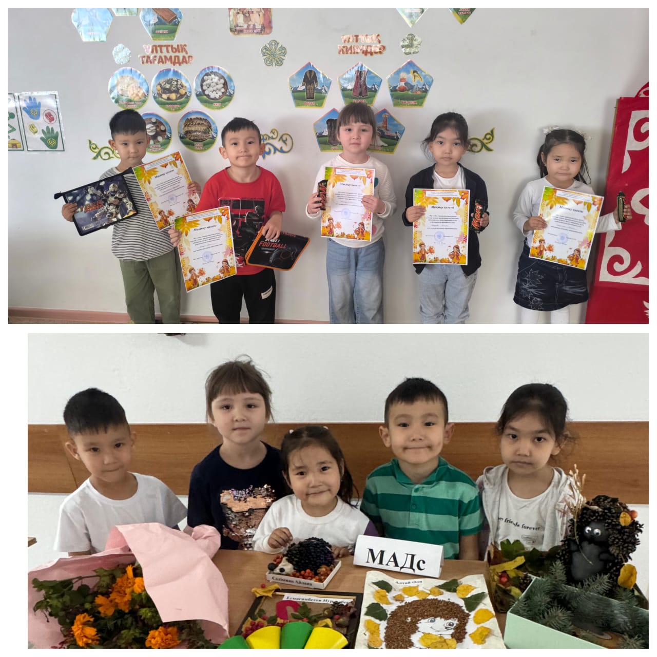 "Адал азамат' біртұтас тәрбие бағдарламасы аясында Мадс- 4- сынып аралығында " Күз сыйы" атты қолөнер көрмесіне Мектепалды даярлық тәрбиеленушілері ата- аналарымен бірге жасаған жұмыстарымен бөлісті. Мақсаты: Балаларды еңбекқорлыққа, әдемілікке баулу.