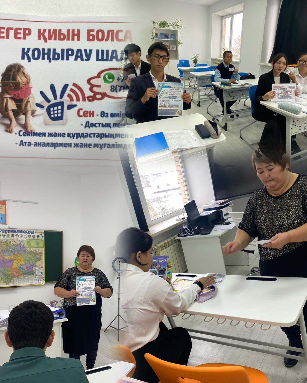 Балалар мен жасөспірімдердің өз өмірі мен мәселелері, достық, махаббат, ата-аналармен және құрдастармен қарым-қатынас туралы анонимді түрде мамандармен ашық сөйлесуіне мүмкіндік беру. Буллингтің, зорлық-зомбылықтың алдын алу, психологиялық қолдау көрсету туралы түсіндірме жұмыстары жүргізілді. Педагог-психолог: М.Жортынбаева