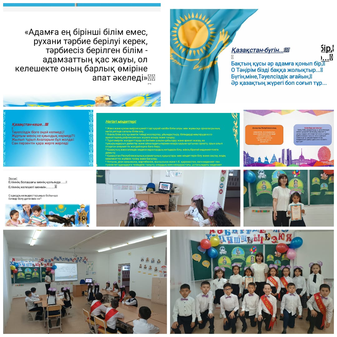 Біртұтас тәрбие бағдарламасын жүзеге асыру аясында 1-сынып білім алушыларымен "Білімім Отаныма" тақырыбында сынып сағаты өткізілді.