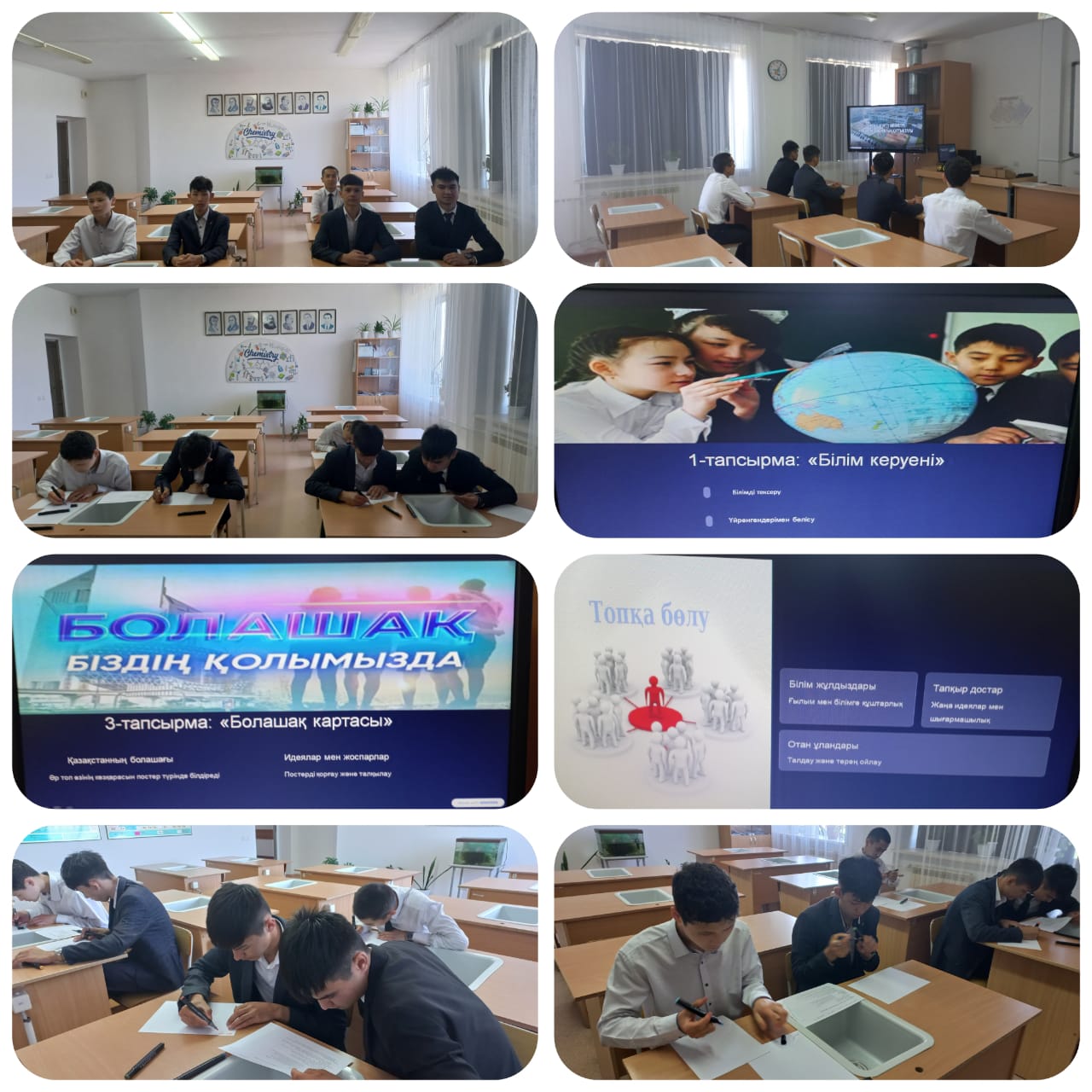 Біртұтас тәрбие бағдарламасын жүзеге асыру аясында 10-сынып білім алушыларымен "Білімім Отаныма" тақырыбында сынып сағаты өткізілді.