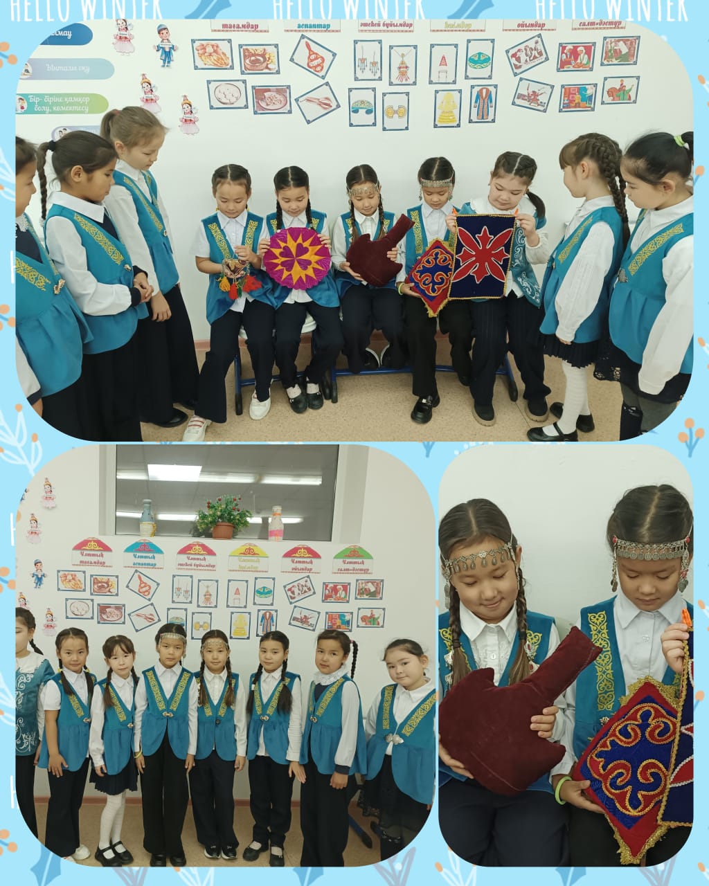 "Адал азамат: біртұтас тәрбие" бағдарламасы аясында "Ұлттық киім - ұлт қазынасы" тақырыбында мектеп білім алушылары ұлттық киімді құрметтеп, ұлттық бұйымдардың түрлерімен танысуда