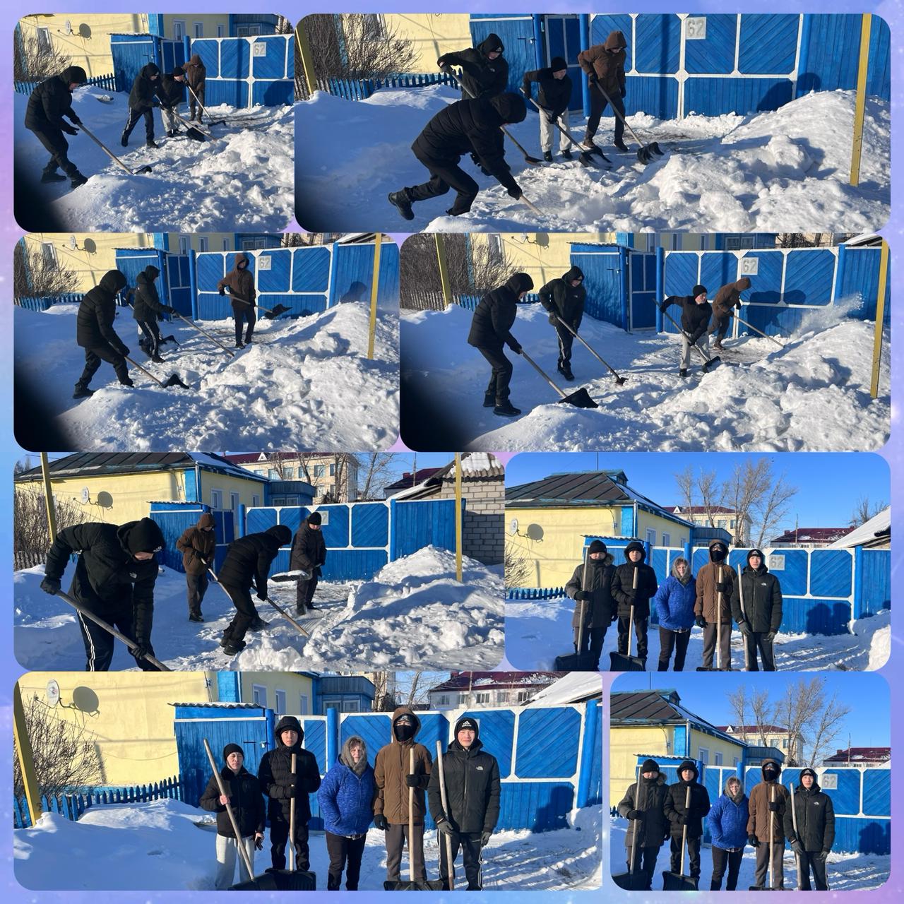 Ақпан айының 27 жұлдызында «Адал азамат» біртұтас тәрбие бағдарламасы шеңберінде «Қамқор»жобасы аясында алғыс айту мерекесіне орай «Қарттар - менің қымбат қазынам» тақырыбы негізінде 8,9-сынып білім алушыларымен бірге ауданымыздың ардагері Ищенко Татьяна Алексеевнаға ауладағы қарды шығару бойынша көмек көрсетілді.
