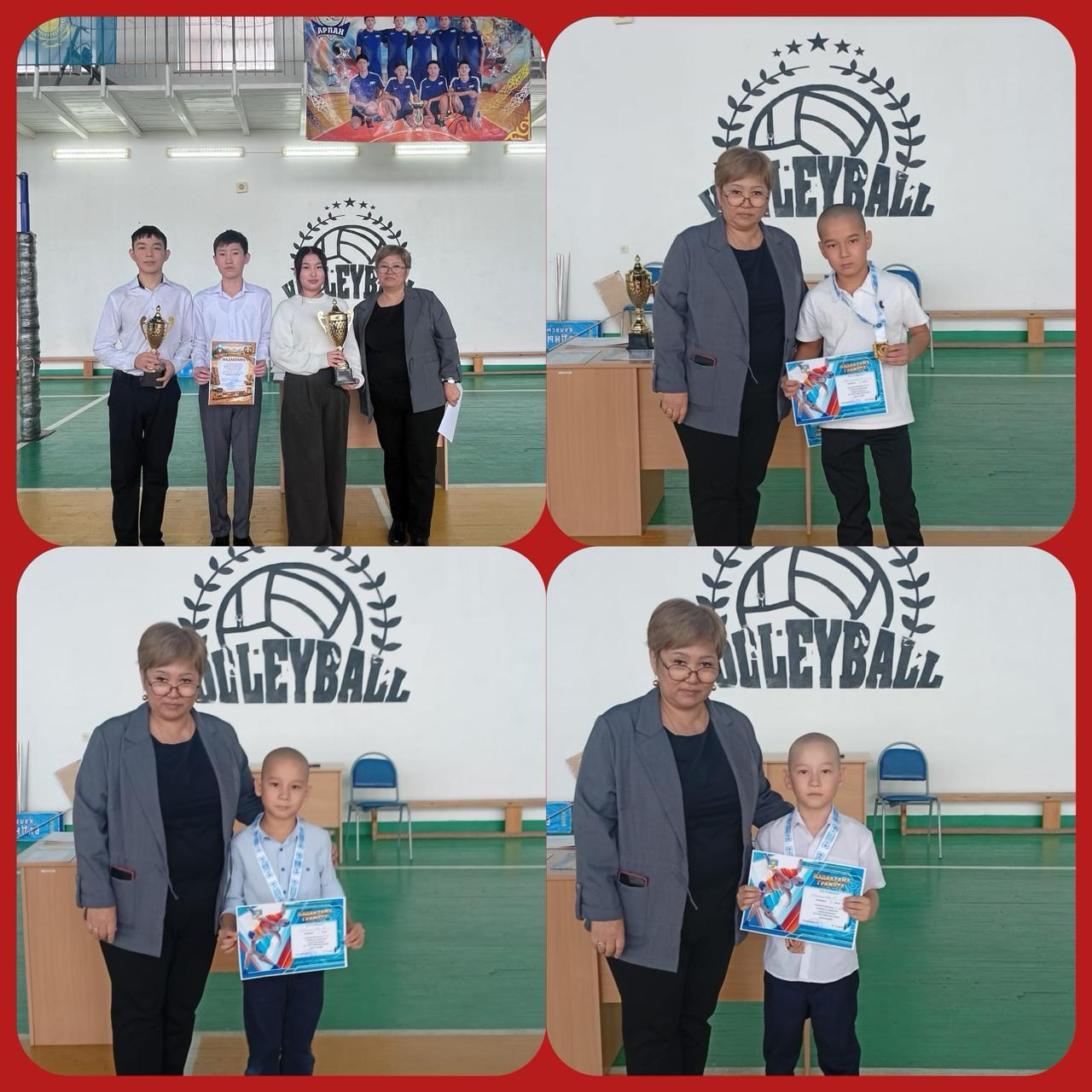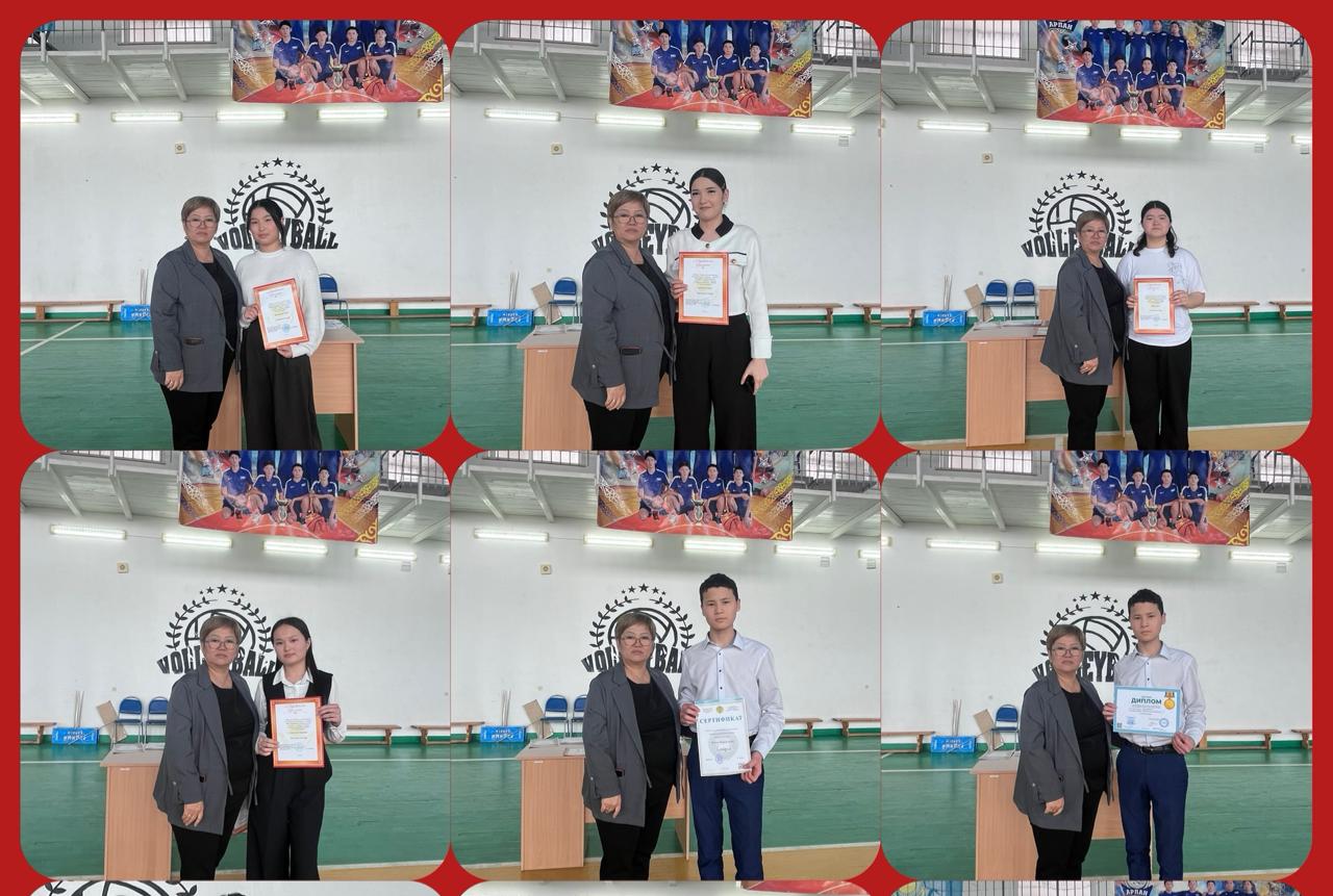 Бүгін мектеп басшысы Коскадамова Тамаша Шамеловна тәлімсәт барысында ұлттық ойын тоғызқұмалақтан және грек рим күресінен жеңімпаз білім алушыларды салтанатты түрде құттықтап, мақтау қағаздарын берді.