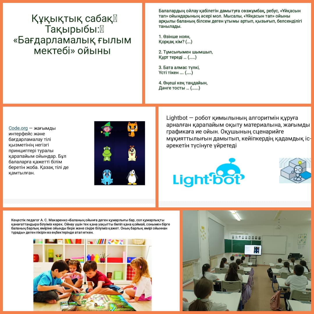 Адал азамат: Біртұтас тәрбие" бағдарламасын іске асыру мақсатында 3 - сыныпта "Бағдарламалық ғылым мектебі" ойындары" тақырыбында құқықтық сабағы өткізілді.